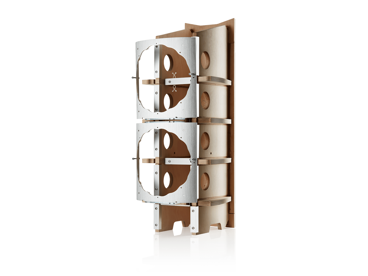 803 D4는 두 개의 Aerofoil™ 베이스 콘을 독립된 솔리드 알루미늄 베이스 포드에 탑재합니다. 각 포드는 캐비닛에서 가장 강성이 높은 곡면 구조에 알루미늄 플레이트를 통해 단단히 고정됩니다. 단일 금속 구조로 성형된 포드는 강력한 베이스 드라이버를 위한 완벽한 기계적 기반을 제공합니다.
